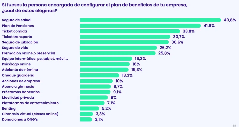 Seguro de salud 🏥 (hasta 500 €/año por empleado, su cónyuge y descendientes. En caso de discapacidad, se puede llegar hasta 1.500 €/año), ticket restaurante 🍽️ (hasta 11 €/día), ticket transporte público 🚊🚌 (hasta 136,36 €/mes = 1.500 €/año), ticket guardería 🍼 y, formación 🎓 (ambos sin límite), y por último, las acciones corporativas, conocidas como stock options 📈 (exentas hasta 12.000 €).