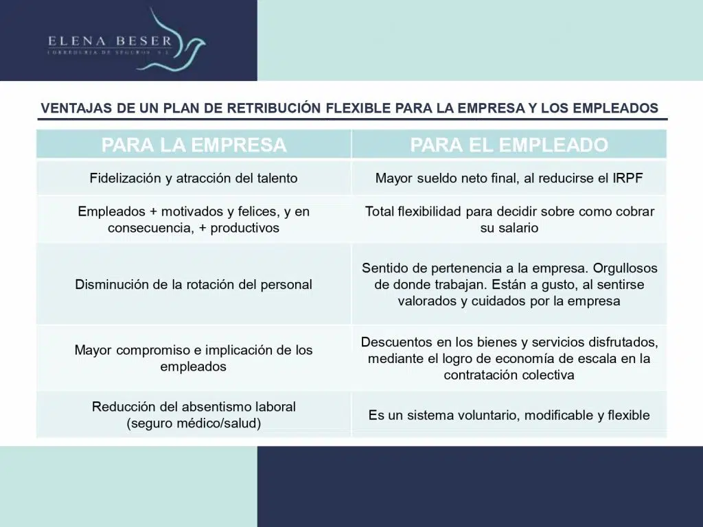 Precisamente, en la Retribución Flexible, es donde queremos incidir por sus altas ventajas, y su alto valor que aporta para completar la compensación total en la empresa.
